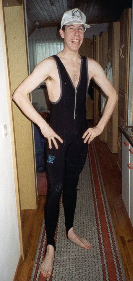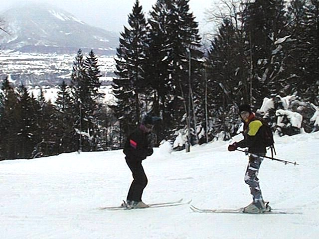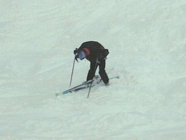 As any skier will testify, the only problem with using unfamiliar equipment is that getting one part set up just right merely exposes the limitations of whatever is *not* set up right, and so it proved for Martin. Half-way through a full-on turn, the bindings on both skis gave way, and Martin was launched into mid-air. The rest of the skiers queueing for the lift were then treated to the sight of a huge human snowball hurtling towards them, crashing straight through the catch fencing and being suspended above them by a section of the catch fencing that had managed to wrap itself around his ankles. It was a very sheepish - and completely snow-covered - Martin R who picked himself up, extricated himself from the catch fencing and made his way back up the hillside to round up the rest of his widely-scattered gear.