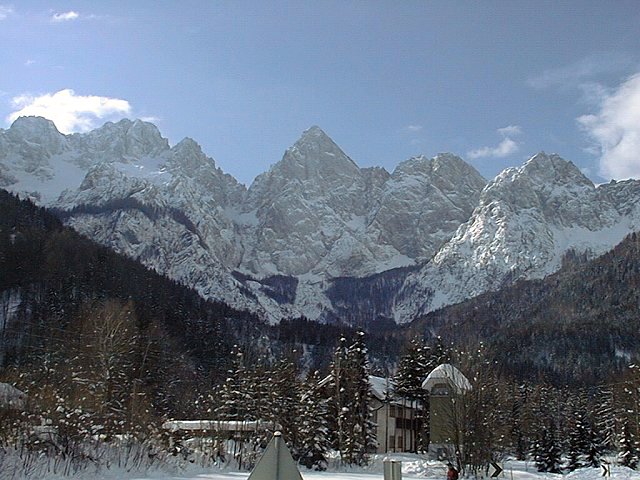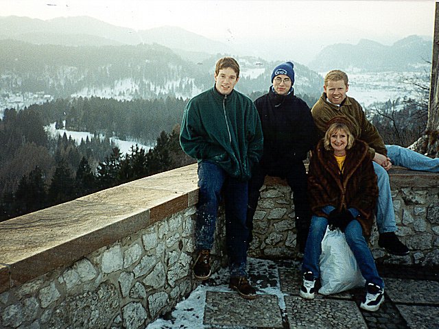 Val: "Paul, Culvin, Rob, Mark and I decided to go up to Bled to do some skiing, but having waited some time - both in and out of the bar - at the bus stop for Culvin, we finally arrived in Bled too late to catch the ski shop, which had closed for the afternoon, and was not due to reopen until the skiers were due to return at the end of the day.