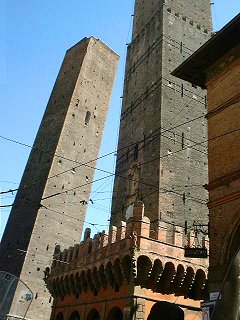 Julie: "We stayed at Sara's the night before, so it was a slightly less stressed than usual Martin (Fisher) this morning. Less stressed, that is, until we got on the plane and heard that the first twenty minutes were going to be a bit bumpy. We checked into the Hotel Aster, just outside the centre of Bologna, and then headed into town for a meal, but not before spending a good twenty minutes trying to work out the bus ticket system. Still no joy! (It's all in the Tour Handbook, gang... :-) ) Stopped at a pub: Martin ate big olives and wouldn't shut up about the size. Wine and no money later we staggered back to the hotel." |