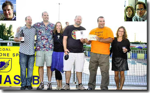 Team Switzerland was once again in attendance at the third annual Parmacup UWH tournament in Parma, Italy, in mid-September, maintaining its 100% attendance record. It also had two other 100% records at this tournament to observe: one record of losing all its games and the other record of winning the party. We had many of the same players as on the 2009 team, so winning the party was not likely to be in any doubt at all, especially as we had Eryl, a new recruit to Team Switzerland from Martin's former club in the UK, who was just as renowned as a party animal as he was for his astonishing playing abilities. Fortunately an earlier request for good weather had been heard by the gods and we were treated to a repeat of 2009's glorious sunshine rather than 2008's rainy downpours, which kept us in good spirits during the course of the day. We got off to a shaky start in the water, however, losing our first two games, which put us into the second division for the playoffs. However, from that point we rallied and won our next four games, against Trieste from Italy, Genk from Belgium and the German men and the German women. This then put us into the second division playoff against a new team, Ciriè from Italy. Unfortunately, Ciriè were very fit and very fast, and we were unable to stop them from defeating us, so we finished in second place in the second division, 10th place overall in the tournament. And yes, we won the party!
