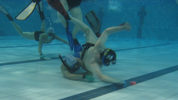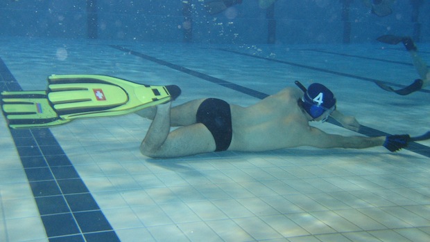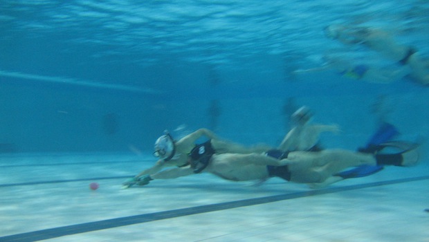 From the very start of underwater hockey in Switzerland we had heard that there was also a club in Mulhouse, France, that had recently started up, but had never managed to establish contact with them. However, thanks to the intervention of Alex Garcia, a French Canadian living in Basel, not only did we now have contact with the Mulhouse team, but we had also been invited to a tournament! The "Swiss" team was, as usual, a great coming together of nations, and it was an Australian, a Frenchman, a Colombian, a Brazilian and an Englishman that converged on Piscine de L'Illberg, where the tournament was being held. Sadly our German delegate, Jan Maisenbacher from SLRG Luzern UWR, had to withdraw as his son was taken ill the night before, but we look forward to welcoming him onto a future team. After a stop at the village shop to stock up on supplies we made our way to the pool where one by one the team members arrived. We were then introduced to the other members of our team, the Mulhouse ladies, who were also only five, so between us we made up a full team of ten. Onward and upward! Our first game was the usual disorganised affair that befalls every scratch team, and we lost heavily to the host team, the Mulhouse men. One team talk later we had higher hopes for our second game, but these were quickly dashed when only one of the five Mulhouse ladies turned up to start the game. Although those of us that started the game played much better together as a team than we had in the first game, the resulting chaos of the latecomers meant that our second game finished with much the same result as had our first. However, at this point we were very happy to receive a better offer from the Nancy team, who themselves had arrived with only six players, and so our team switched from being Suisse/Mulhouse to being Suisse/Nancy. This combination immediately gelled, although not quite well enough to avoid a further defeat in our third game, although this was at the hands of Strasbourg, the eventual winners of the tournament. Our fourth game was against our former teammates, the Mulhouse ladies, and despite their team being boosted with some additional firepower, we still managed our first victory of the day in what would have been our last game of the day. However, as we were now playing to Nancy's playing schedule, rather than to the Mulhouse Ladies', we had the bonus of one last game, against our first opponent, the Mulhouse men. Unfortunately, our first victory of the day was also our last, as the Mulhouse men were again too strong for us, even though it was a much closer battle than the first one had been. We would very much like to thank our hosts for an excellent tournament and look forward to further cooperation with them in the very near future. Final results: 1-Strasbourg 1